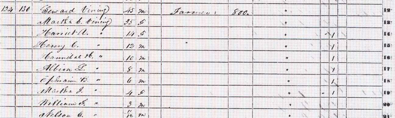 | Albion L. Vining | 8 | 18 | not living in this household | |||