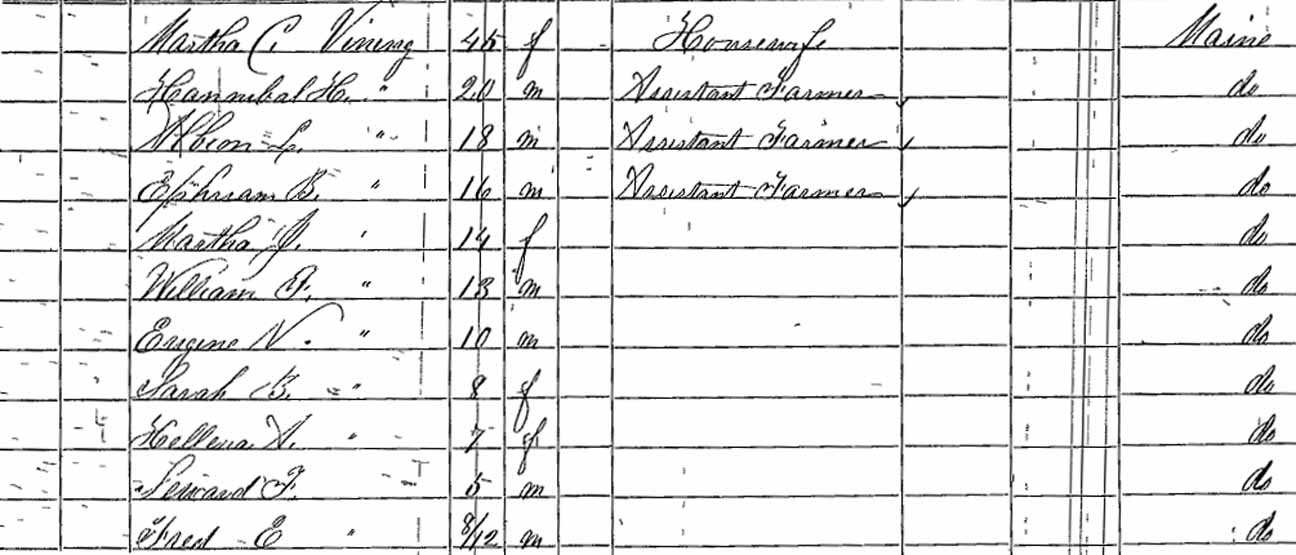 | Harriet A. "Hattie" Vining | 14 | not living in this household | ||||
