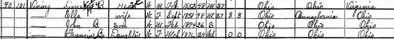 | O[l?]evie Vining | 3 | ? | [living? in separate household] |