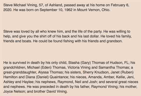 Obituary for Steve Michael Vining: