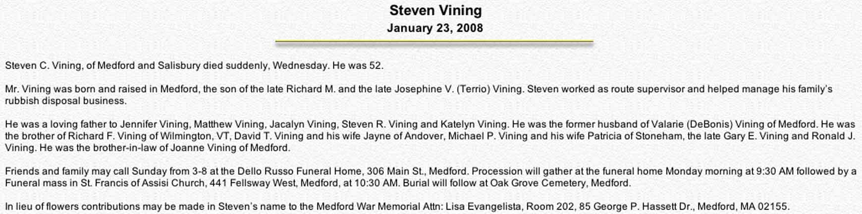 Obituary for Steven C. Vining:
