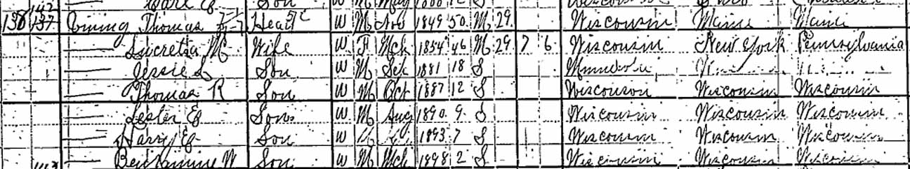 | Laura May Vining | 5 | ? | married and living in separate household | |||