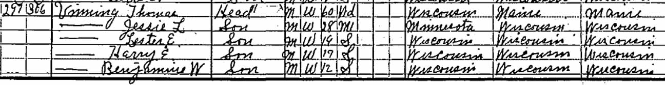 | Harry Edward Vining | 7 | 17 | married and living in separate household | |||