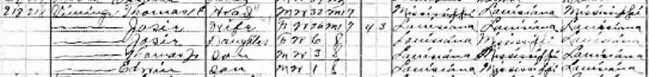 | [Josie J. or Cassie?] Vining | 6 | 15 | 26 | [living? in separate household] |