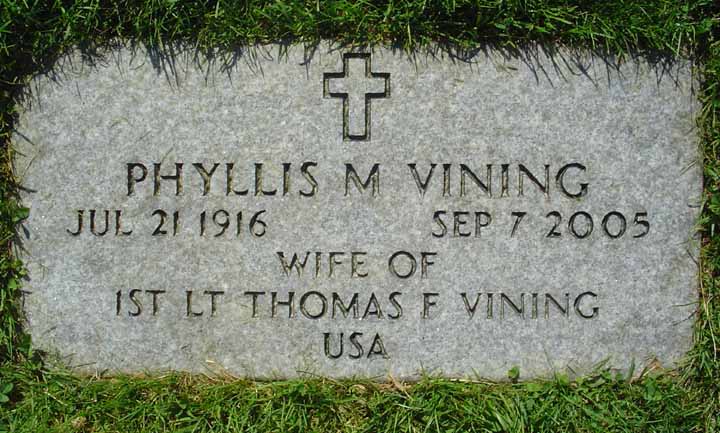 Gravestones for Thomas Frank Vining and Phyllis May (Boothby) Vining, in Veterans' Cemetery, Augusta, Maine: