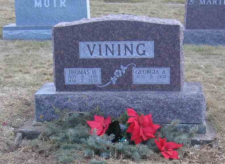 Headstone for Thomas Harry Vining and Georgia A. (Renning) Vining, in Highland Cemetery, Great Falls, Cascade County, Montana: