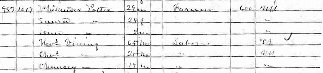 | Thomas "Philo[w?]" Vining | 65 [see note below] | dead |
