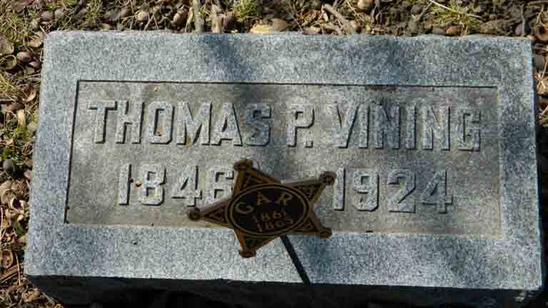 Gravestone for Thomas Patterson Vining, in Oak Grove Cemetery, Delaware, Delaware County, Ohio (from Find A Grave):