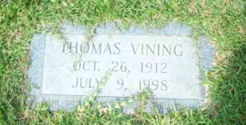 Gravestone for Thomas Underwood Vining, in Pleasant Hill Baptist Church Cemetery, St. Helena Parish, Louisiana (from Find A Grave):