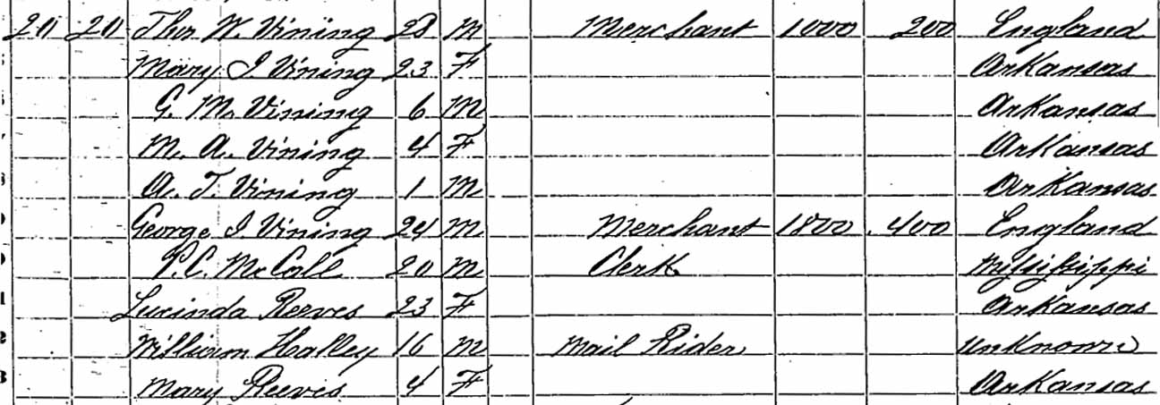 | Mary Amanda Vining | 4 | 14 | [married and?] living in separate household | ? | dead | |