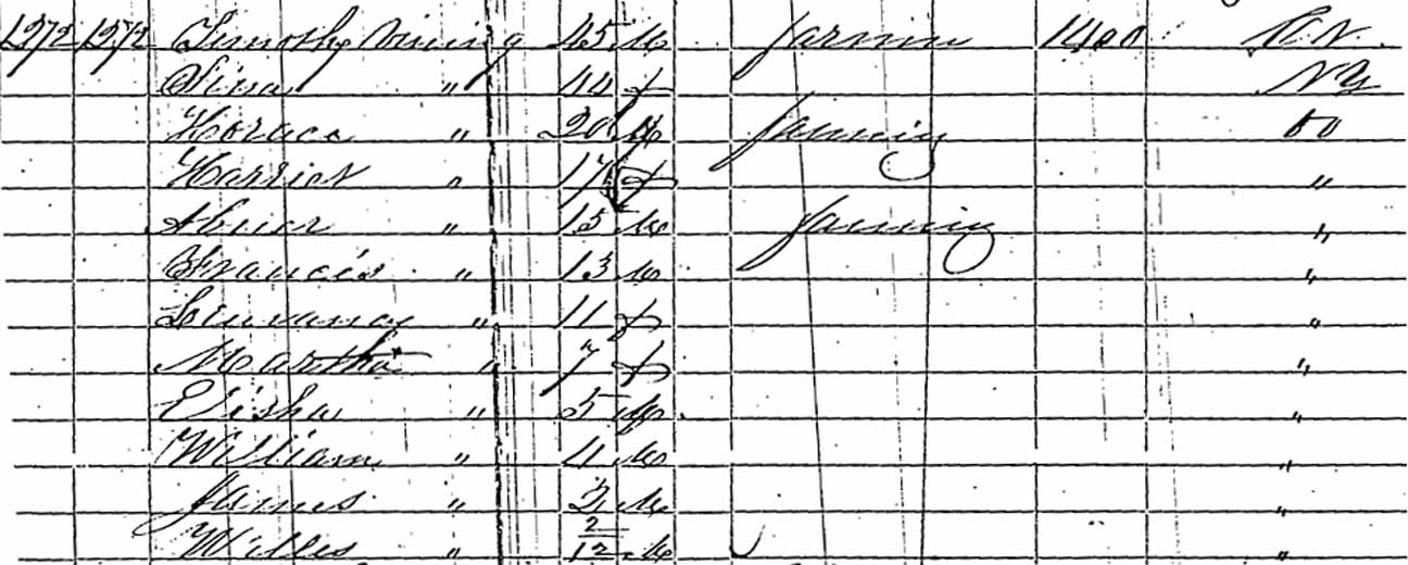 | Harriet Sina Vining | [see 1840 below] | 17 | married and living in separate household | |||