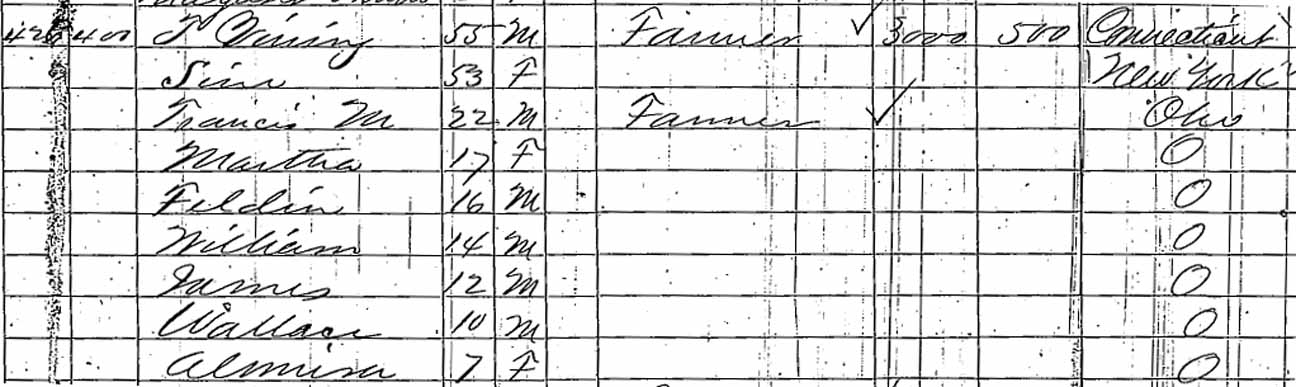 | Wallace D. Vining | 2 m. | 10 | living in separate household | married and living in this household [see 1880 below] | ||
