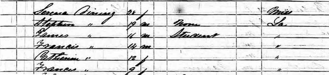| Eunice Jane Vining | ? | F 15–20 | living in separate household | |