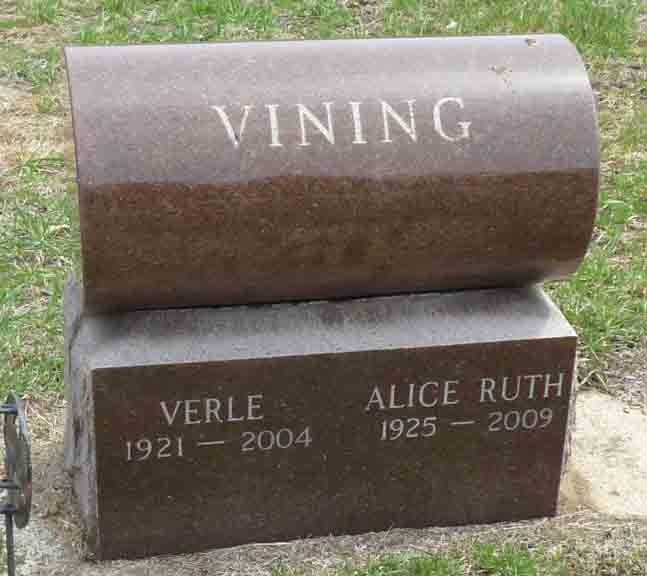 Headstone for Verle Vernon Vining and Alice Ruth (Bednarek) Vining, in Saint James Catholic Cemetery, Neshkoro, Marquette County, Wisconsin (from Find A Grave):