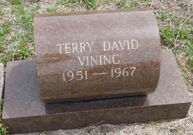 Gravestone for Terry David Vining, son of Verle Vernon Vining and Alice Ruth (Bednarek) Vining, in Saint James Catholic Cemetery, Neshkoro, Marquette County, Wisconsin (from Find A Grave):