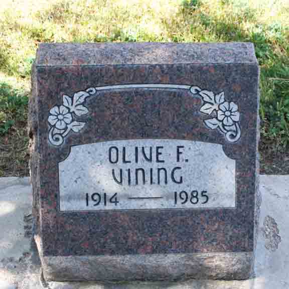 Gravestones for Victor Henry Vining and Olive Florine (Dochter) Vining, in Mountain View Cemetery, Pueblo, Pueblo County, Colorado (from Find A Grave):