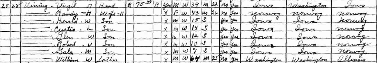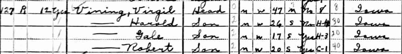 | Glen William Vining | [?] | 12 | living in separate household |