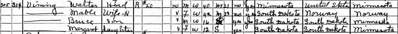 | Mabel (Bye) Vining | 32 | 42 | 52 |