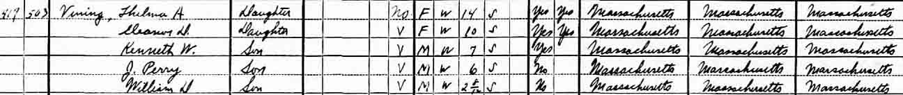| Thelma Alexina Vining | 3 years, 4 months | 14 | [living? in separate household] |