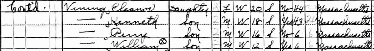 | Ethel Linwood (Joseph) Vining | 36 | 44 | 54 |