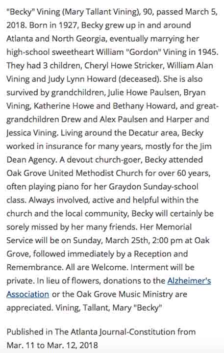 Obituary for Mary (Tallant) Vining: