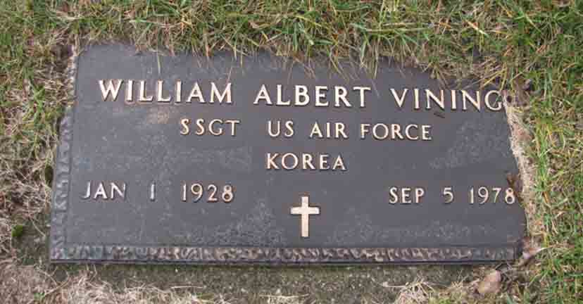 Gravestone for William Albert Vining, in Grove Place Cemeter, Chili Center, Monroe County, New York (from Find A Grave):