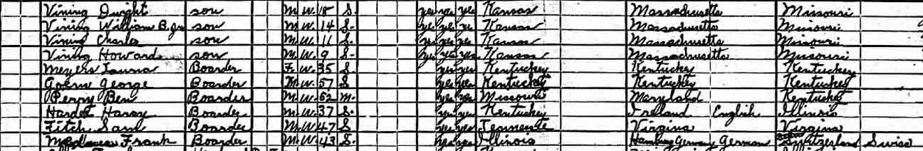 | Dwight Vining | 8 | 18 | married and living in separate household | |