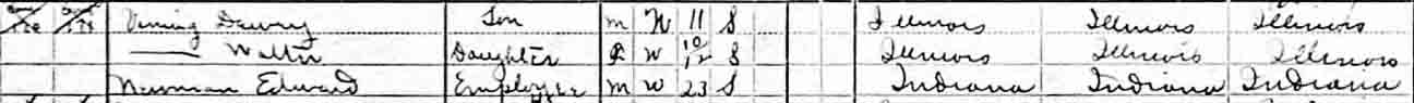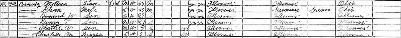 1920 Ganeer Township, Kankakee County, Illinois - dwelling 159, family 202. In 1920, Dewey T. Vining was listed also as a member of the Yellowhead Township, Kankakee County, Illinois, household of a Charles and Lena Westerberg.: