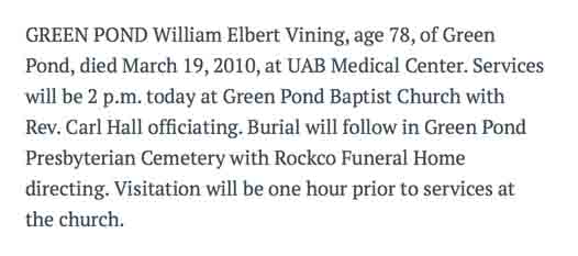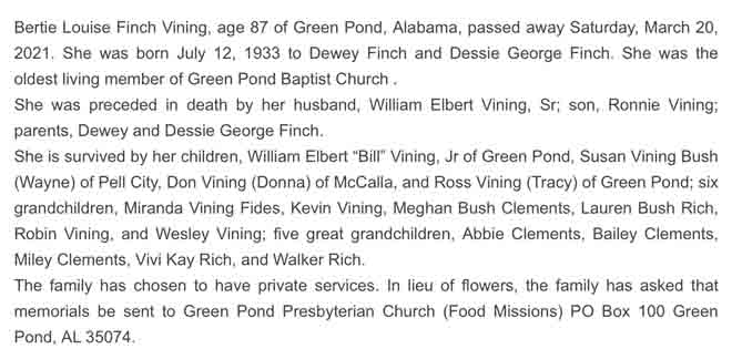 Documentation for William Elbert Vining - Bertie Louise Finch