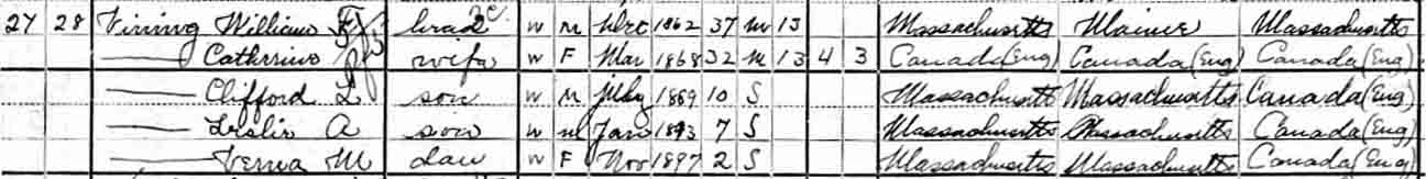 | Leslie Albert Vining | 7 | 17 | [27?] | [living? in separate household] | ||