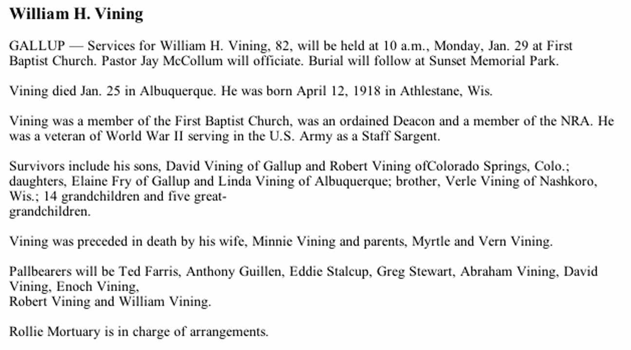 Obituary for William Henry Vining: