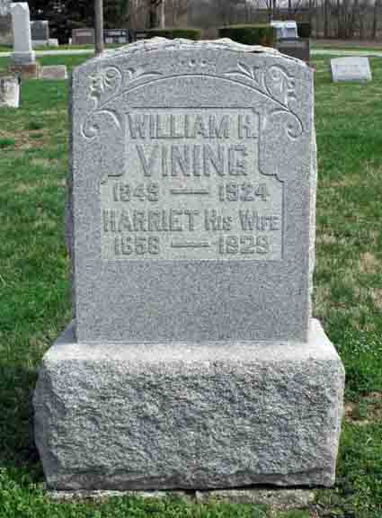 Headstone for William Hallet Vining and Harriet […], in Ashley Union Cemetery, Ashley, Delaware County, Ohio (from Find A Grave):