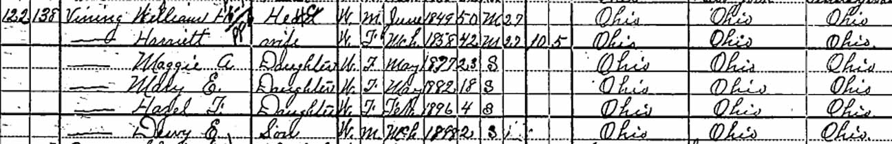 | Margaret A. Vining | 2 | ? | 23 | 33 | [living? in separate household] | ? |