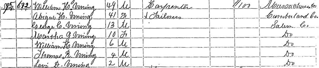 1900 Salem (west ward), Salem County, New Jersey - dwelling 201, family 201. From the 1900 census, it appears that William H. Vining (son of William H. Vining and Abigail H. [...]) was living in this household along with his son, William Jr. ([4?] y., b. New Jersey).: