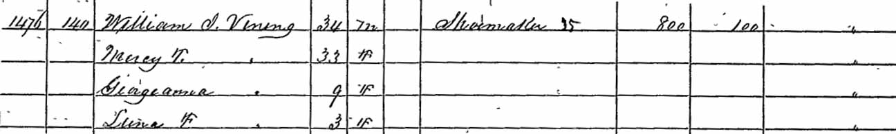 | Mercy T. ([...]) Vining | 24 | 33 | 50 | 53 | ? | 73 | 83 | ? |