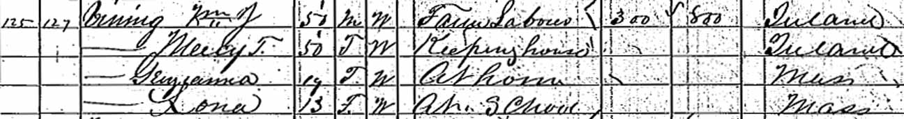 1870 Hanover, Plymouth County, Massachusetts - dwelling 125, family 127: