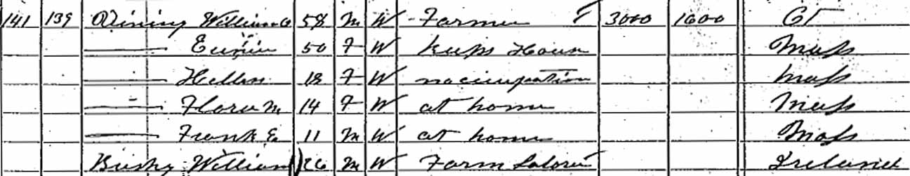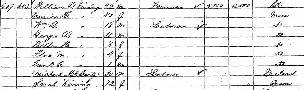 | William Dwight Vining | ? | 18 | married and living in a separate household | |||