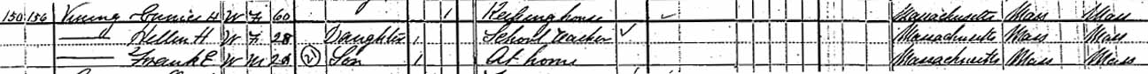 | Eunice Horton (Dwight) Vining | ? | 40 | 50 | 60 | ? | ? |