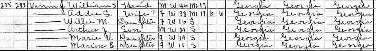 | Willie Mae Vining | 6 | 16 | living in separate household | |||