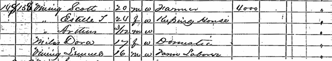 | Estelle (Miles) Vining | 24 | 31 | ? | 54 | ? | ? |