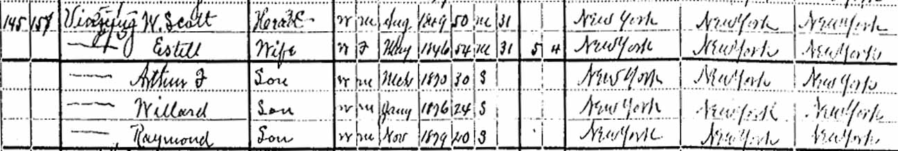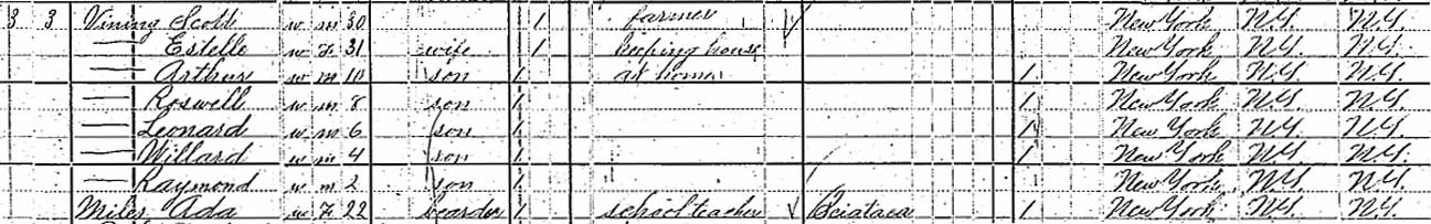 1880 Jewett, Greene County, New York - dwelling 3, family 3. Also living in this household in 1880 was Ada Miles (22 y., b. New York, a school teacher).:
