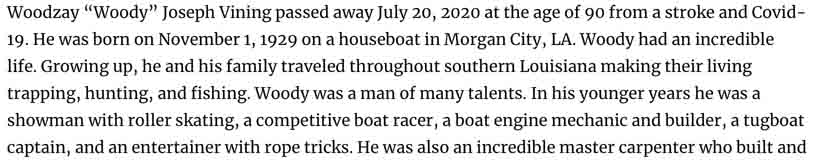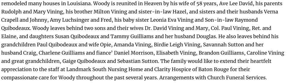obituary for Woodzay Joseph Vining (from website of Church Funeral Services and Crematory):